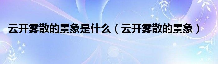 关于云开雾散的景象是什么,云开雾散的景象这个很多人还不知道,今天菲菲来为大家解答以上的问题,现在让我们一起来看看吧!