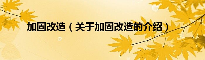 大家好,小夏来为大家解答以上的问题。加固改造,关于加固改造的介绍很多人还不知道,现在让我们一起来看看吧!