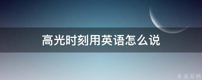最佳答案高光时刻用英语是Highlight time。高光时刻指的是巅峰时刻、精彩时刻的意思,经常在体育比赛中使用,当有运动员在比赛中表现非常出色时,大家就会把这一瞬间称为高光时刻。后面用途变得很广,大概就是很值得骄傲的瞬间。