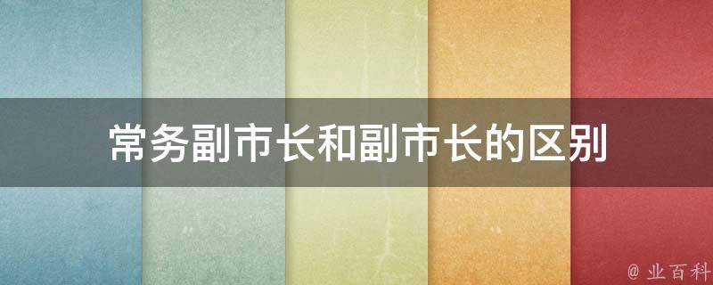 3、数量不同:常务副市长在数量上一般为一名,但是也有特殊的城市,比如深圳市;副市长一般都有多名,分管多个部门。