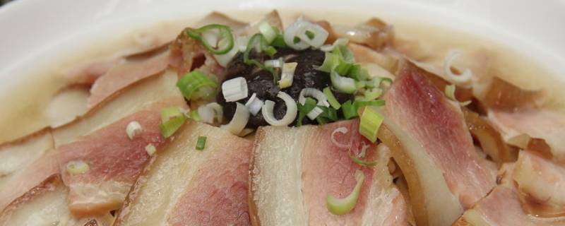 2、蒲菜:将蒲菜洗净灼水,改刀切成段,整齐码放在盘中垫底;咸肉蒸熟后,改刀成5厘米长、3厘米宽、0.5厘米厚的片。鸡汤中放盐兑味;把虾干和咸肉均匀地放在蒲菜上面,加入兑好味的高汤,上蒸笼大火蒸约10分钟左右取出即可。