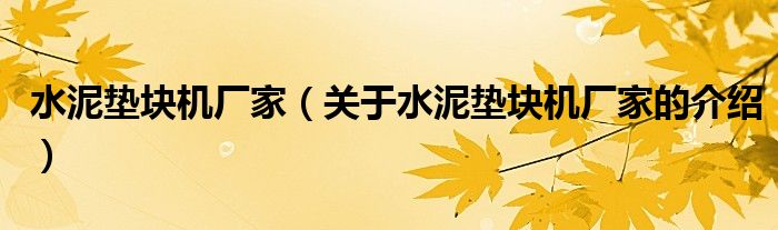 大家好,小夏来为大家解答以上的问题。水泥垫块机厂家,关于水泥垫块机厂家的介绍很多人还不知道,现在让我们一起来看看吧!