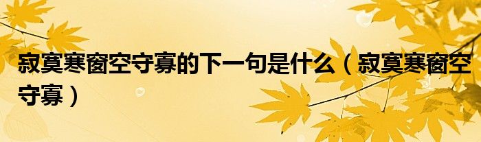 大家好,小联来为大家解答以上的问题。寂寞寒窗空守寡的下一句是什么,寂寞寒窗空守寡这个很多人还不知道,现在让我们一起来看看吧!