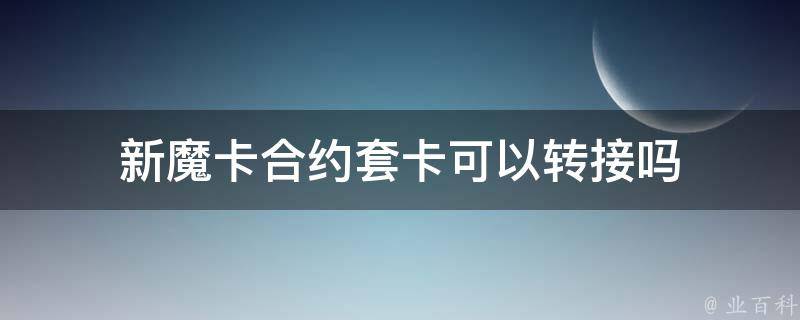 新魔卡合约套卡不可以转接。三大运营商要求携号转网的手机卡,不能是政企卡、校园卡、流量卡、靓号用户,以及一些与运营商签订了一定协议的合约卡。合约卡是一种定期使用并需按约定消费的手机卡,与普通手机卡不同,使用者需要按照约定的规定时间内持续使用。