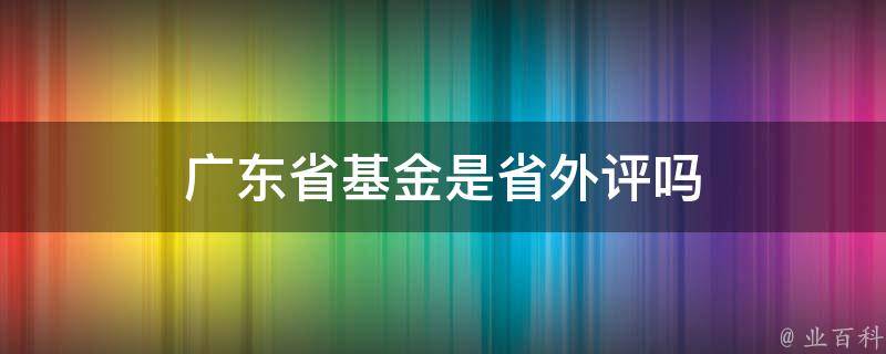 广东省基金是省外评吗