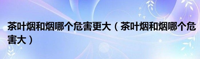 2、所以说危害还是小一点,而茶叶主要成分是烟草,所以危害尼古丁大一些。