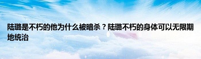 大家好,小华来为大家解答以上的问题。陆璐是不朽的他为什么被暗杀?陆璐不朽的身体可以无限期地统治这个很多人还不知道,现在让我们一起来看看吧!