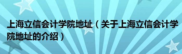 上海立信会计学院地址(关于上海立信会计学院地址的介绍)