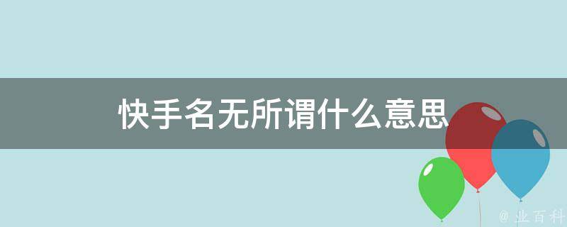 快手名无所谓的意思是抒发感慨,表达对某些事情不在乎的看法。无所谓一词,出自清朝叶名沣《桥西杂记柳耆卿墓》:枣阳,今为襄阳府治。赵翼《陔馀从考读卷官》记载:今但拟别高下,将前列十卷进呈,候上亲定,无所谓读卷之事矣。
