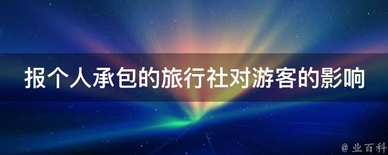 4、旅游费用:个人承包的旅行社通常需要自负盈亏,因此旅游费用可能会相对较高,而且可能存在价格欺诈等问题。