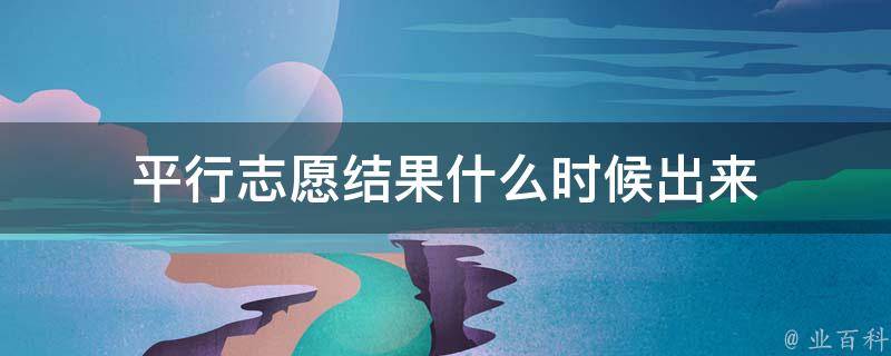 平行志愿的录取结果在半个月到一个月后就能出来。高考志愿投档录取是按照批次的先后进行的,如果是最早进行的提前批志愿,在7月上旬就可以查询到录取结果。在提前批录取后,本科一批、本科二批、高职专科批次会依次录取,录取结果会在7月中旬到8月中旬陆续公布。