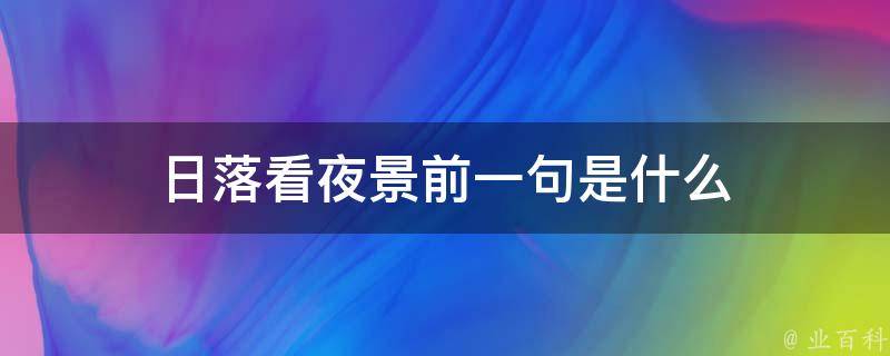 日落看夜景前一句是日出看云海。这句话的意思是早上看云海,傍晚欣赏夜晚的美景。这两句是形容一种宁静和惬意的生活方式,即在清晨时分欣赏壮丽的自然景象,在日落之后则享受城市或乡村的夜间美景。