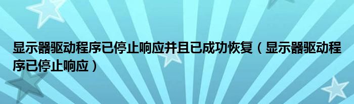显示器驱动程序已停止响应并且已成功恢复(显示器驱动程序已停止响应)