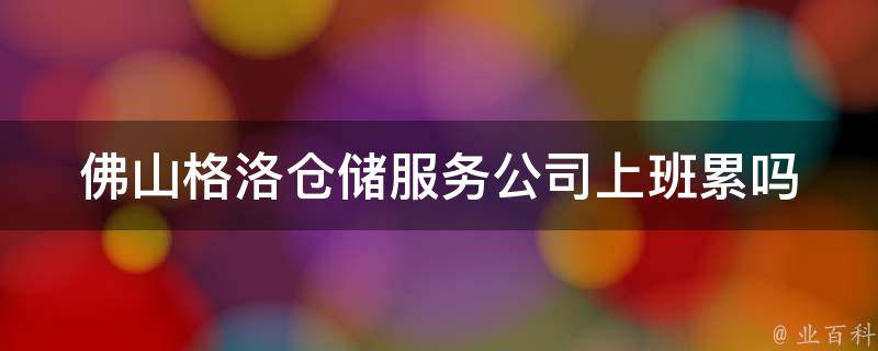 佛山格洛仓储服务公司上班累。一般来说,仓储行业的工作内容比较繁重,需要搬运和整理大量的货物,工作强度较大。此外,在佛山格洛仓储服务公司,可能还需要面对高温、潮湿等较为恶劣的工作环境,对于体力和耐力都是一种考验。
