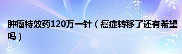 大家好,我是小科,我来为大家解答以上问题。肿瘤特效药120万一针,癌症转移了还有希望吗很多人还不知道,现在让我们一起来看看吧!