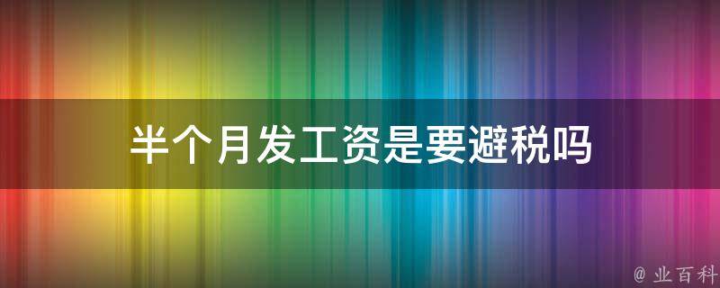 半个月发工资不是要避税。工资发放的时间并不是为了避税而规定的,而是根据企业的财务制度、工资发放流程等确定的。工资发放的时间应该根据企业的实际情况和相关规定来确定,同时应该遵守国家法律法规的规定,确保工资发放的合法性和合理性。