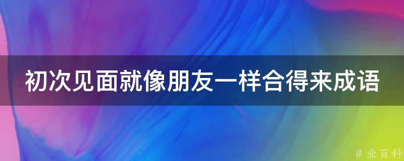 1、一见如故:是一则来源于历史故事的成语,成语有关典故最早见于《左传襄公二十九年》。一见如故原义是初次见面就像老朋友一样(故:老朋友),形容初次相见就情投意合。