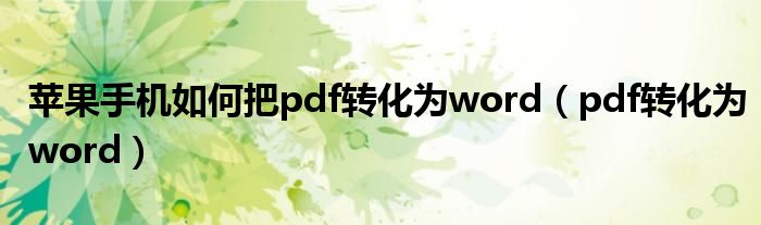 今天小饼为大家解答以下问题,关于苹果手机如何把pdf转化为word,pdf转化为word很多人还不知道,现在让我们一起来看看吧!