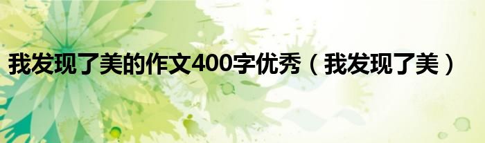 大家好,我是小科,我来为大家解答以上问题。我发现了美的作文400字优秀,我发现了美很多人还不知道,现在让我们一起来看看吧!