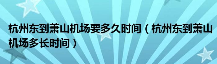 大家好,小华来为大家解答以上的问题。杭州东到萧山机场要多久时间,杭州东到萧山机场多长时间这个很多人还不知道,现在让我们一起来看看吧!