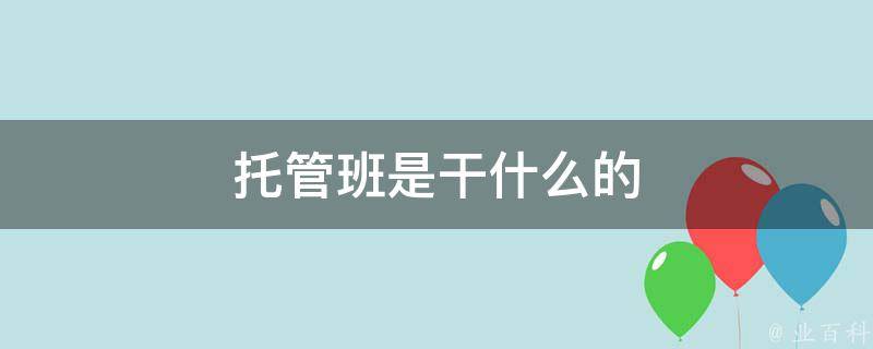托管班需要看管孩子安全,还承担有接孩子放学、安排孩子午饭或晚饭等的责任,部分托管班还提供住宿,帮助解决父母没时间管孩子的难题。托管班主要面向低龄儿童,如幼儿园孩子、小学生等,与小朋友们一起写作业、做游戏,通过老师的监管和学生的互动以期形成良好的生活学习习惯。