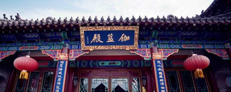 伽蓝殿供奉的是伽篮菩萨。伽蓝殿是寺院道场的通称,佛教伽蓝神的代表形象。伽蓝神,就狭义而言,指伽蓝土地的守护神;广义而言,泛指所有拥护佛法的诸天善神。我们见到的伽篮菩萨像穿圆领宽大之深绿袍,胸前加挂一盔甲,展现出华丽富丽之气。