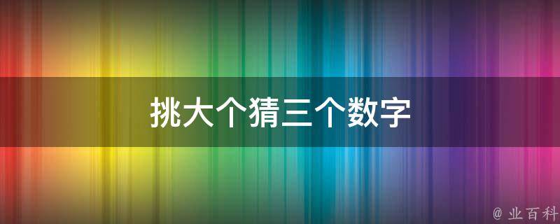 最佳答案挑大个猜三个数字是933,因为挑有九画,而大个均有3画,所以,挑大个猜三个数字是933。在数字谐音中,9代表久、就、求,3代表想念、生命、生活。另外,0代表圆满、完美、无尽;1代表唯一、你、起点;2代表爱、两人世界。