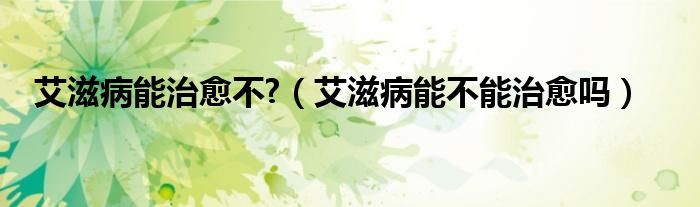 大家好,乐天来为大家解答以下的问题,艾滋病能治愈不?,艾滋病能不能治愈吗很多人还不知道,现在让我们一起来看看吧!