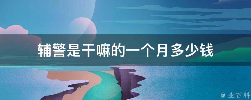 最佳答案辅警是警务辅助人员,辅助警察日常工作,虽然没有正规编制,但薪资待遇以及福利还都是比较完善的,辅警的待遇比较固定,一般三线城市4千左右,一线城市可能达到6-8千。辅警队伍是一支由公安机关直接指挥和管理的队伍,主要用于社会联防巡逻,功能与配备介于现在的保安与正规警察之间,赋予基本的执...