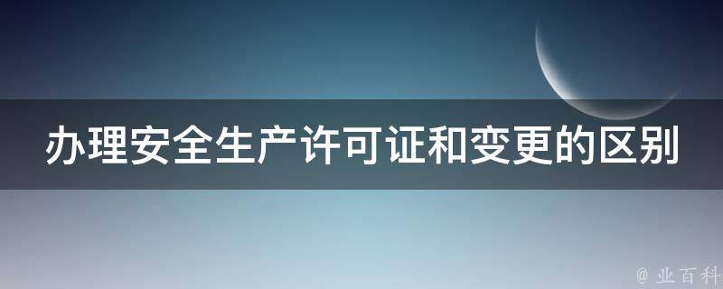 办理安全生产许可证和变更的区别在于概念不同。办理安全生产许可证指企业第一次申办安全生产许可证;而变更安全生产许可证是指企业因为某些原因使得安全生产许可证的主体发生改变,如因为业务需要,公司的注册地址出现迁移等,都需要去主管部门申请变更安全生产许可证。