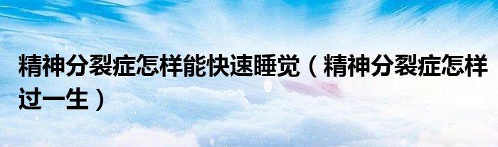 大家好,小联来为大家解答以上的问题。精神分裂症怎样能快速睡觉,精神分裂症怎样过一生这个很多人还不知道,现在让我们一起来看看吧!