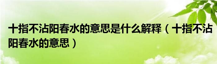 2、十指不沾阳春水意思就是双手不用沾水干活。深层的意思表示此人生活条件较好,不用自己亲自动手就可以丰衣足食。古时候女性一般都要包揽家务活,男主外女主内的分工合作。一般只有富人家的女性才不需要亲自动手做家务活。