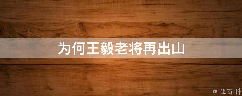 为何王毅老将再出山