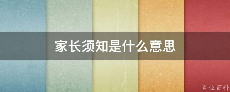 家长须知是指家长对所从事的活动必须知道的事项,多用作通告或指导性文件的名称。父母是孩子的第一任教师,家庭教育很重要,孩子的性格以及好的习惯的养成,都离不开家庭的教育。家长要有意识地创造良好的生活环境,使子女受到感染和熏陶。