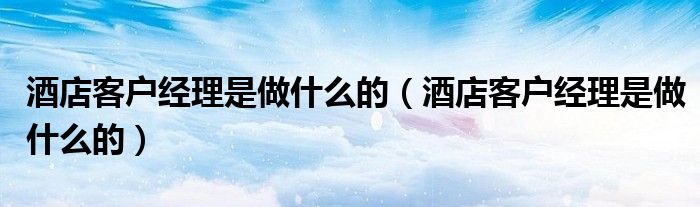 大家好,小联来为大家解答以上的问题。酒店客户经理是做什么的,酒店客户经理是做什么的这个很多人还不知道,现在让我们一起来看看吧!