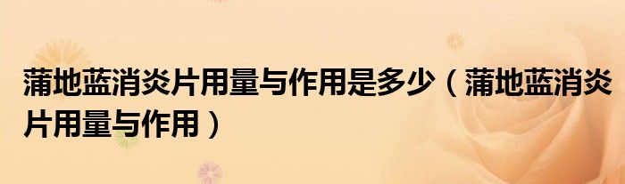 大家好,乐天来为大家解答以下的问题,蒲地蓝消炎片用量与作用是多少,蒲地蓝消炎片用量与作用很多人还不知道,现在让我们一起来看看吧!