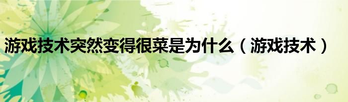 大家好,我是小科,我来为大家解答以上问题。游戏技术突然变得很菜是为什么,游戏技术很多人还不知道,现在让我们一起来看看吧!
