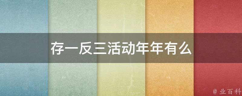 存一反三活动不是每年都有。存一反三是一种促销活动,通常由银行或其他金融机构推出,旨在吸引客户存款或投资。具体的活动时间和形式可能因机构和年份而异,因此不能确定存一反三活动是否每年都有。如果想了解有关存一反三活动的更多信息,建议咨询相关银行或金融机构的客服人员。