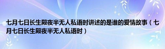 大家好,小联来为大家解答以上的问题。七月七日长生殿夜半无人私语时讲述的是谁的爱情故事,七月七日长生殿夜半无人私语时这个很多人还不知道,现在让我们一起来看看吧!