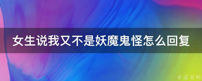女生说我又不是妖魔鬼怪,可以回复:哈哈,那你是不是超能力者啊。这句话可以用来安慰对方或者缓解紧张的气氛。注意回复应该使用准确、简练的语言,避免使用不必要的修辞或复杂的句式,确保回复别人的话语清晰易懂。