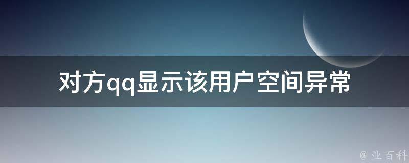 对方QQ显示该用户空间异常有多种原因,可能是对方的QQ空间存在违规行为,如发布违规信息、使用违规插件等,导致空间被封禁或限制访问,还可能是对方的网络环境存在异常,如IP地址被封禁、网络连接不稳定等,导致无法正常访问QQ空间。另外,还可能是对方使用的浏览器或操作系统存在安全漏洞,被黑客攻击或感染病毒,导致空间出现异常。