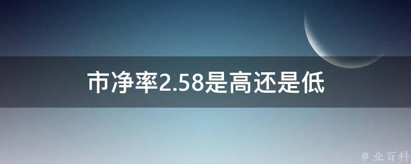 最佳答案市净率2.58是低。市净率是指每股股价与每股净资产的比率,是股票投资分析中重要的参考指标之一。市净率的数值越低,代表投资价值越高,而数值越高,代表投资价值越低。市净率为2.58意味着股票的市场价格相对于其每股净资产而言较低。