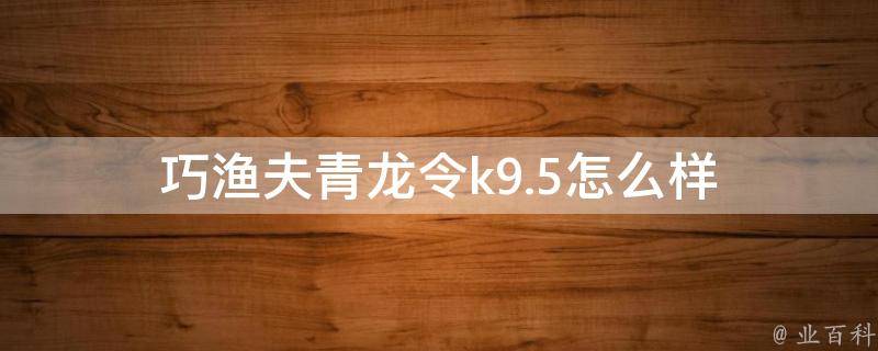 巧渔夫青龙令K9.5质量好,价格实惠,值得购买。巧渔夫青龙令K9.5大物竿采用超轻超硬碳素材质,竿胚材质为碳纤维,钓竿长度为4.9~5.7m,展开节数为4节,是国产的鱼竿,质量十分不错。