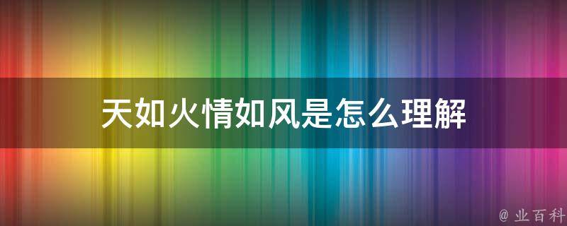天如火,情如风是一种比喻性的表达方式,用来形容一种激烈、热烈、激情四溢的感情。这句话的意思是,天气炎热,如同火烤一般,而对对方的感情却如清风一样,可以降低温度。这句话想表达的是一种让人感到舒适的爱情。