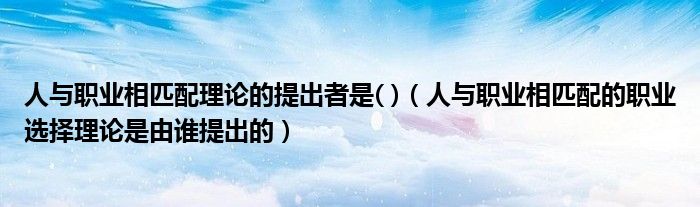 大家好,小联来为大家解答以上的问题。人与职业相匹配理论的提出者是( ),人与职业相匹配的职业选择理论是由谁提出的这个很多人还不知道,现在让我们一起来看看吧!