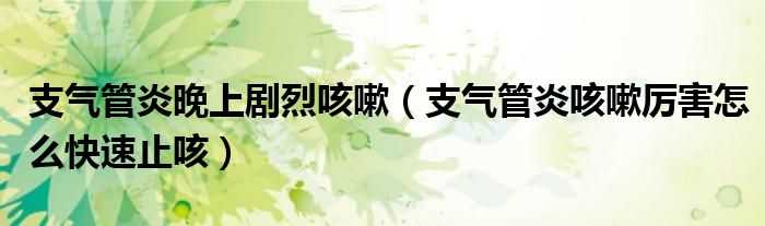 大家好,乐天来为大家解答以下的问题,支气管炎晚上剧烈咳嗽,支气管炎咳嗽厉害怎么快速止咳很多人还不知道,现在让我们一起来看看吧!