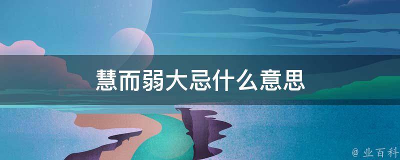 最佳答案慧而弱大忌的意思是过于犹豫不决、缺乏果断的性格可能会对一个人的生活和事业产生不良影响,需要加以警惕和改变。慧而弱是指一个人聪明但是缺乏果断和决断力,过于犹豫不决,容易受到他人的影响,缺乏自己的主张和立场。