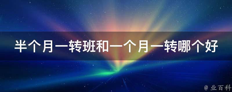 一个月一转好。因为半个月刚好适应了白黑颠倒的顺序,刚刚习惯了就又要倒回来身体吃不消。长时间连续工作会增加身体疲劳和压力,而频繁轮班可能会影响身体健康和生活质量,对于一个月倒一次班来说,虽然工作时间相对较长,但是在休息期间可以充分恢复体力和精神状态,减少了长期连续工作对身体的影响。