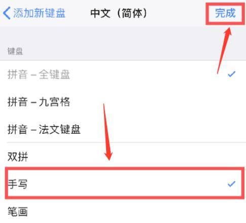 3、点击添加新键盘,选择中文(简体),然后进入设置界面后,勾选手写点完成。