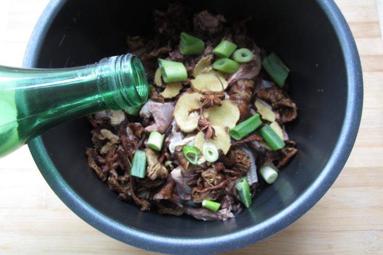 最佳答案1、干蘑菇泡水。2、洗去泥沙,冲洗干净。3、养殖野鸡清洗干净。4、去掉内脏和头部,剁块。5、剁成的鸡块。6、用开水汆烫两次。7、捞出沥干,放入电压力锅中。8、放入清洗好的榛蘑。9、放入切好的葱姜。10、加入白酒去腥。11、加入八角、桂皮,倒入老抽、生抽、盐、糖、蚝油,最后加入1大碗开水。12...